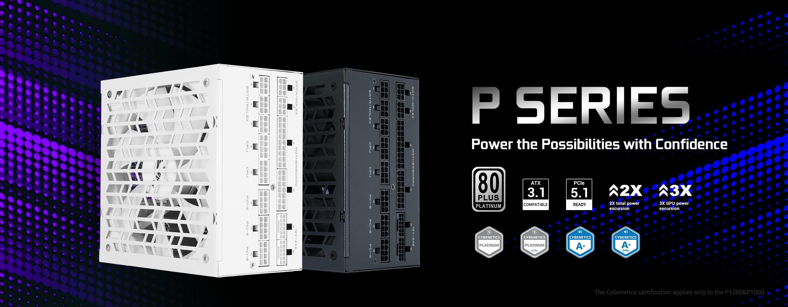 The P series is a fully modular power supply that offers flexible cable management for a cleaner, more organized build. It is 80 PLUS Platinum certified for high energy efficiency and complies with the ATX 3.1 standard for stable power delivery. Equipped with a native PCIe 5.1 connector and cable, it is fully compatible with the latest high-performance graphics cards, ensuring future-proof reliability.