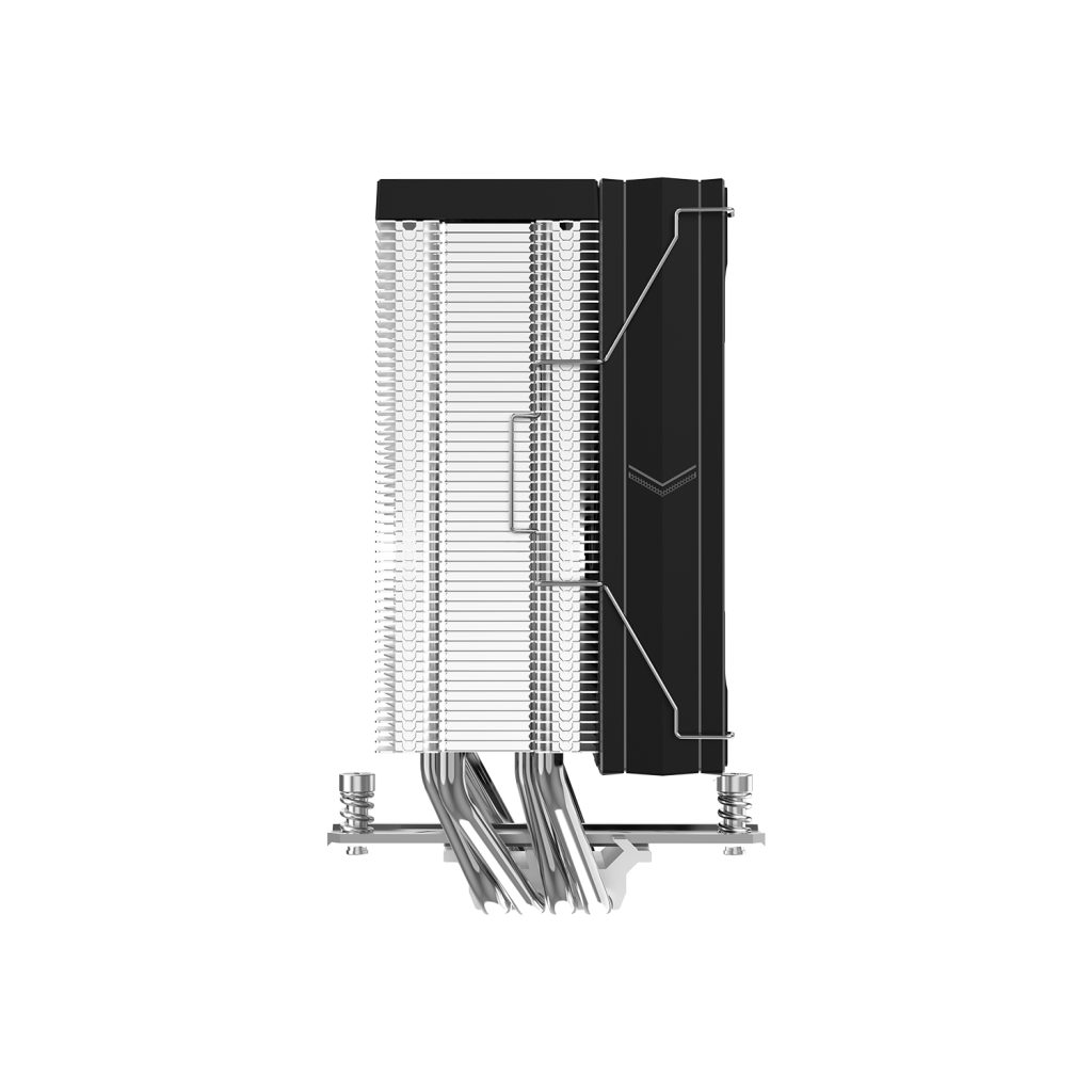 This sleek CPU cooler sports a raw metal finish and a compact single-tower design with direct-touch heat pipes for fast heat transfer. A 120mm guide ring fan ensures efficient, quiet cooling—perfect for mid-sized builds.