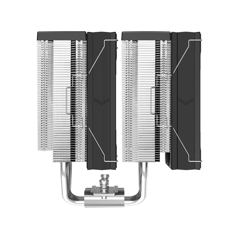 This premium cooler sports a minimalist design with a brushed metal top cover, paired with dual 120mm guide ring fans that deliver powerful yet whisper-quiet cooling.