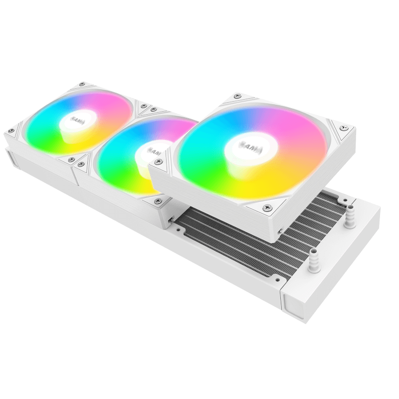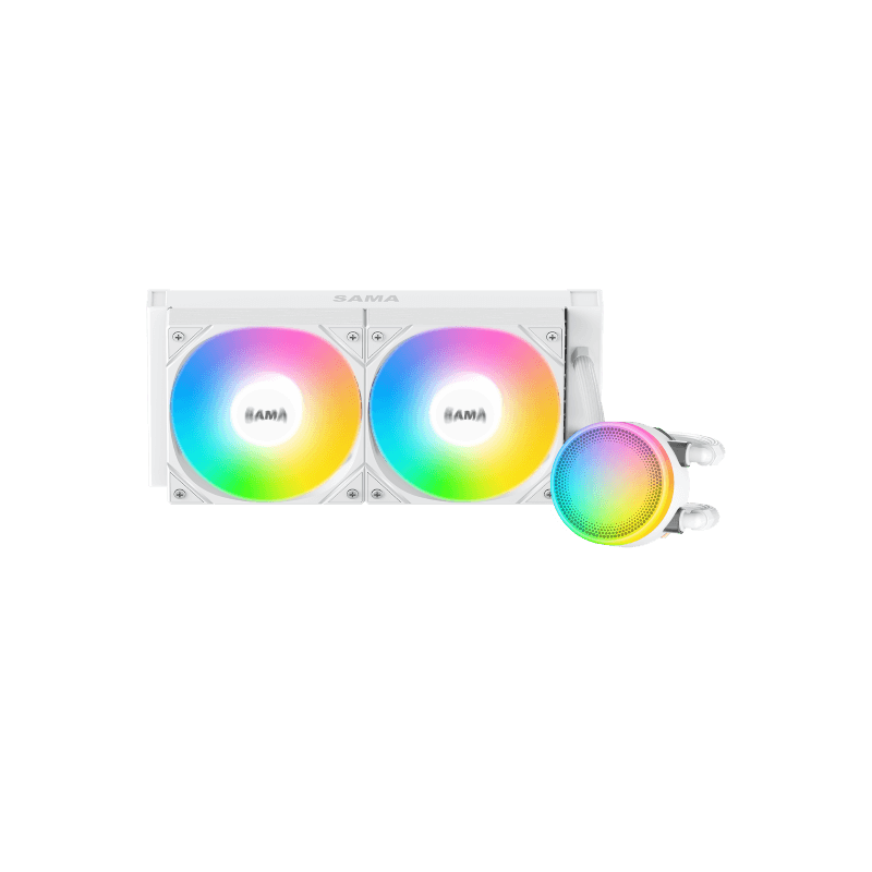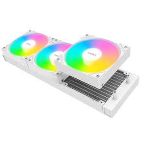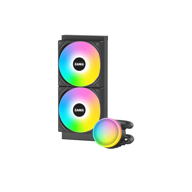 Features a water block topped with a fully reflective cap, creating a vibrant RGB lighting effect that enhances the visual appeal of your build. Paired with a high-performance aluminum radiator, it seamlessly combines practicality with striking aesthetics, ensuring efficient cooling alongside a dynamic, eye-catching look.