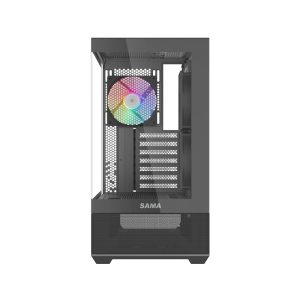 The SAMA V40 case boasts dual tempered glass panels, offering a
